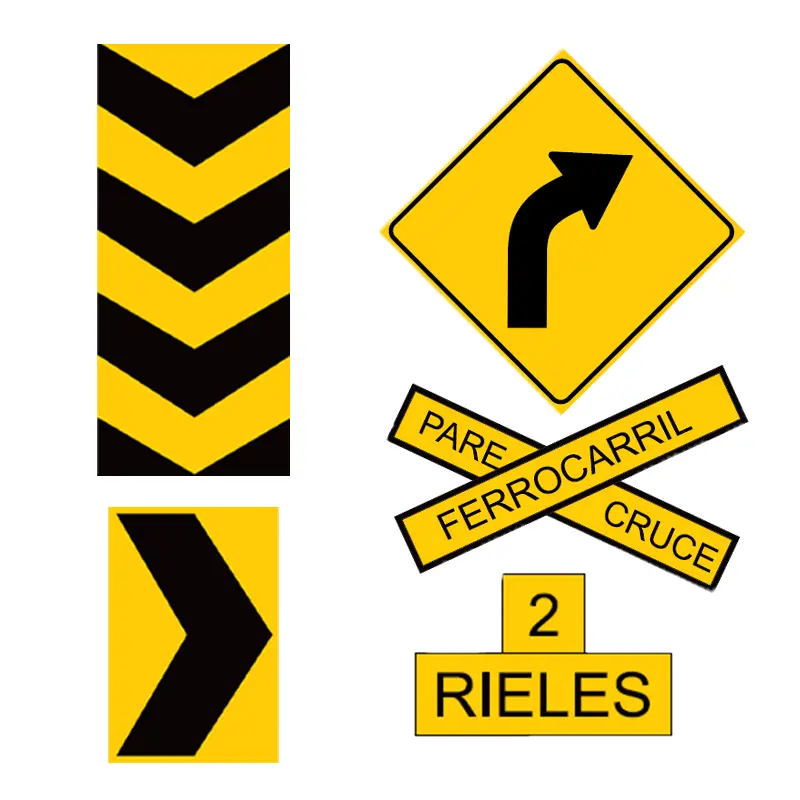 Tienen forma triangular, fondo amarillo y bordes negros o rojos, lo que las hace fáciles de reconocer.